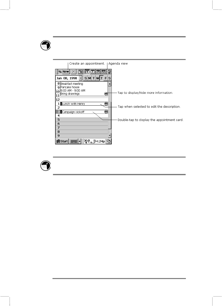 You can quickly display a new appointment card by double-