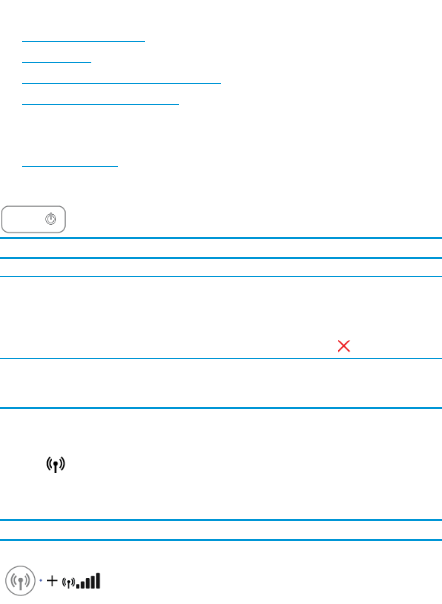 무선 버튼( ) 옆에 있는 무선 표시등과 제어판 디스플레이 상의 무선 상태 아이콘은 함께 작동하여